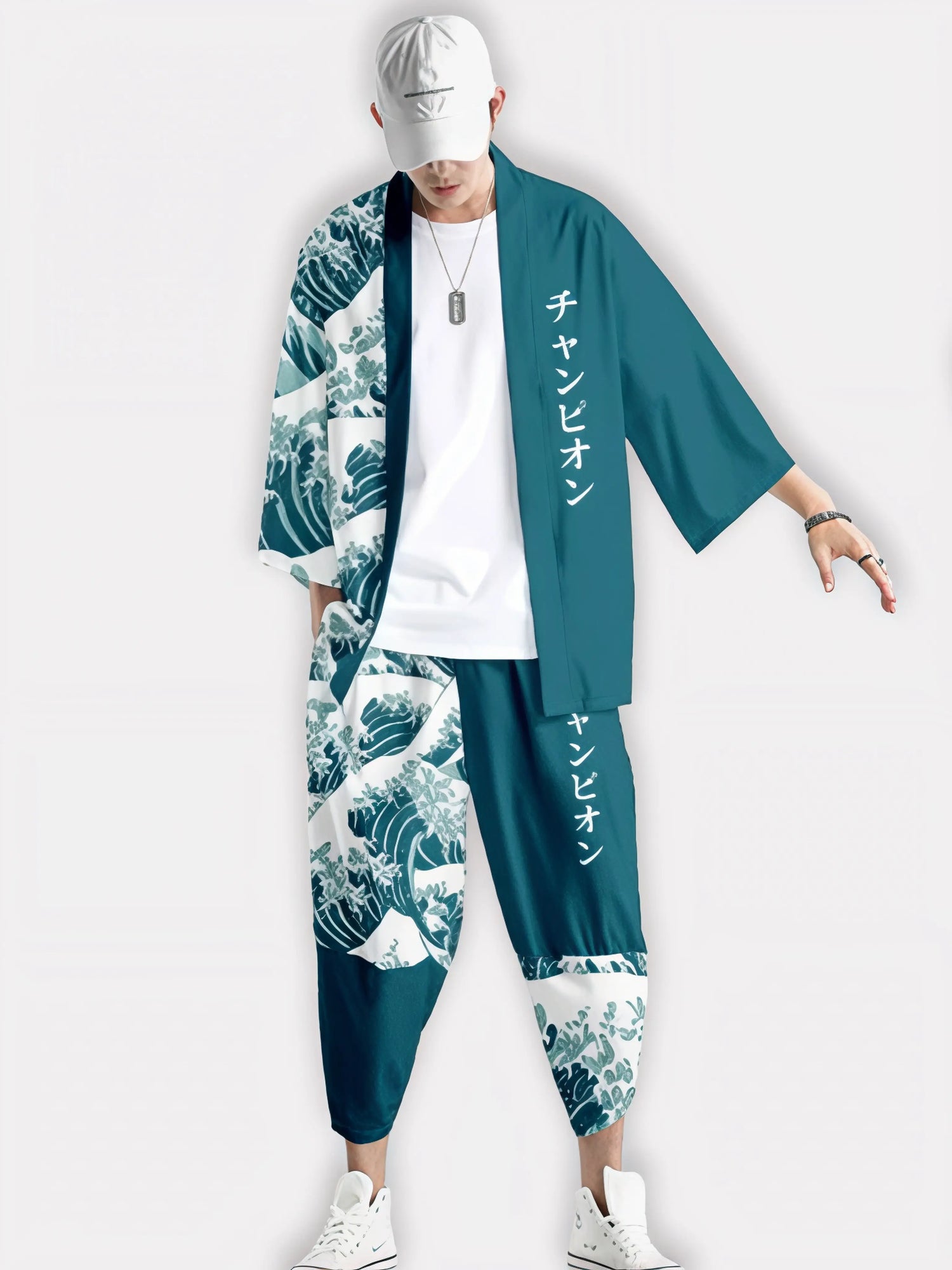 Composez une tenue unique en associant kimono et pantalon, inspirés de l’esthétique japonaise.