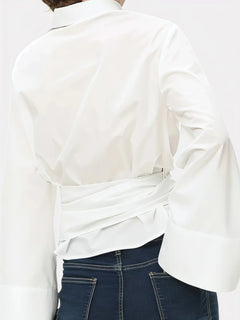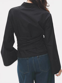 Le Kimono Court | Essence d’Osaka se distingue par son design unique, mêlant tradition japonaise et modernité occidentale. Sa coupe cache-cœur souligne délicatement la taille, tandis que ses manches amples évoquent la fluidité des kimonos classiques. Cette pièce polyvalente s’adapte aussi bien à un look citadin qu’à une allure plus habillée.
