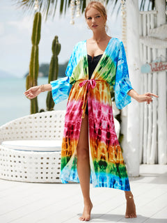 Le Kimono Long Coloré | Aloha peut se porter ouvert sur un maillot de bain, noué à la taille ou en superposition avec un short ou une robe. Sa longueur élégante et ses motifs éclatants en font un indispensable pour toutes celles qui veulent un look estival tendance sans effort.