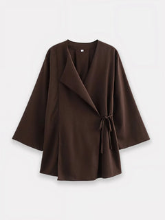 - 1 veste kimono longue avec col en V et fermeture à nouer